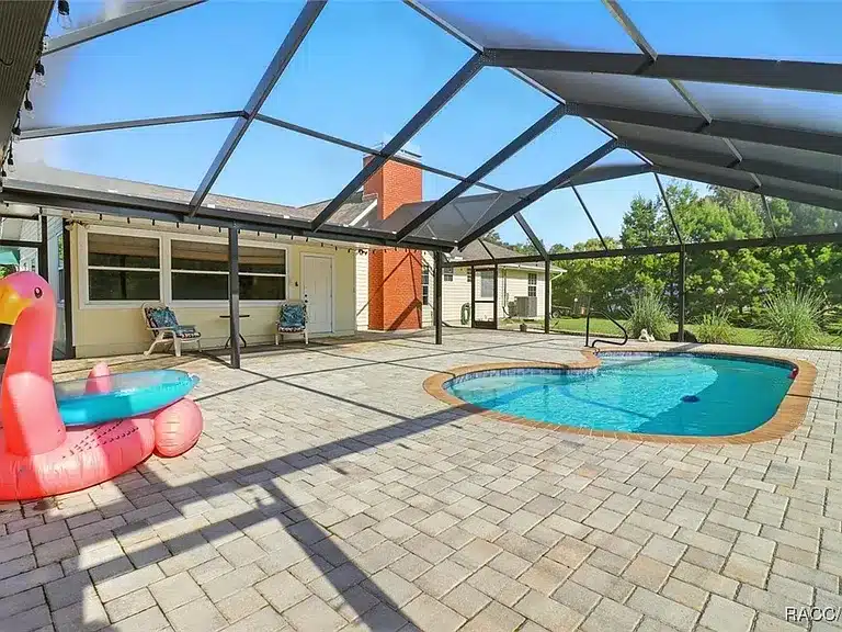 Country-charm meets modern comfort in this 3-bed, 2-bath ranch-style home on just over 1 acre. Features include a heated & cooled saltwater infinity pool with screened lanai, modern kitchen (updated 2022) with stainless-steel appliances, a wood-burning fireplace, and a generator hookup for storm readiness. Detached 2-car garage is built as a hurricane-safe shelter (winds up to 175 mph) and already wired for A/C. The yard is a gardener’s paradise with fruit trees (mango, lemon, pomegranate, fig, pineapple, strawberry) plus a 16×20 shed (new roof 2022). Fully fenced with big gates — ideal for boats, RVs, or trailers. No HOA and no flood insurance required. listed by ashely yates realty