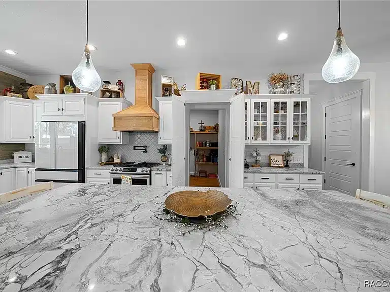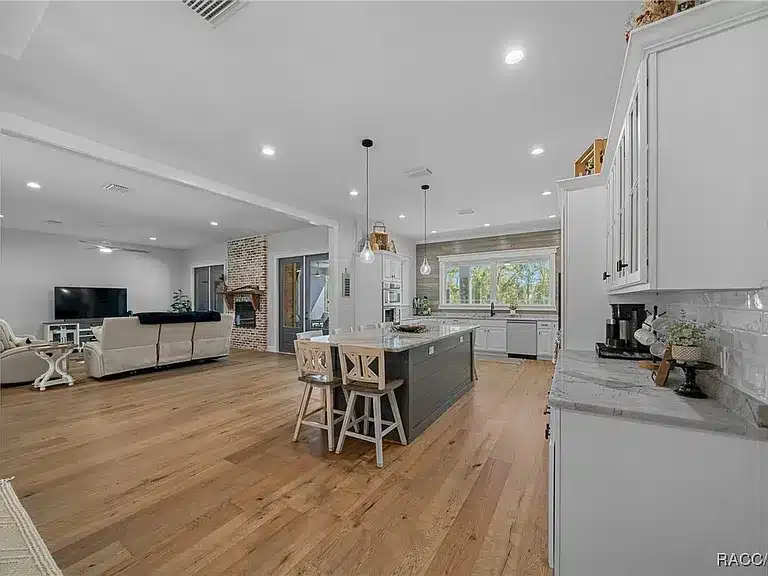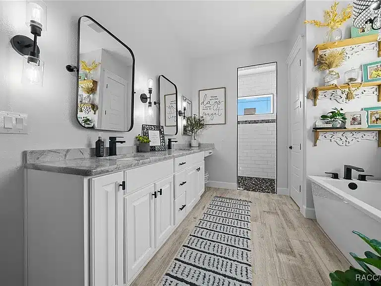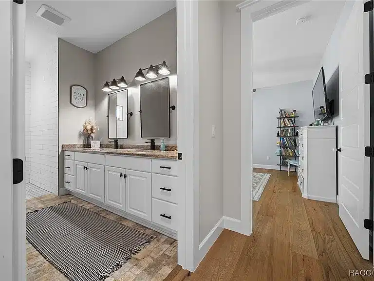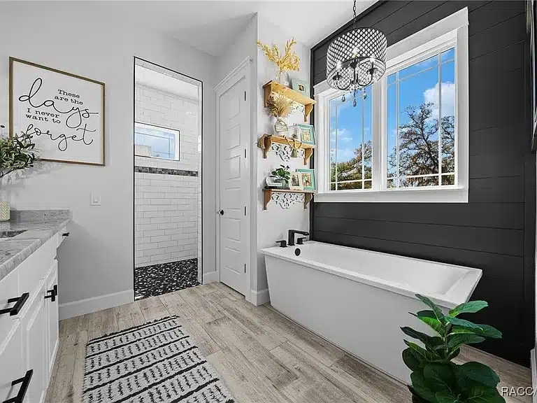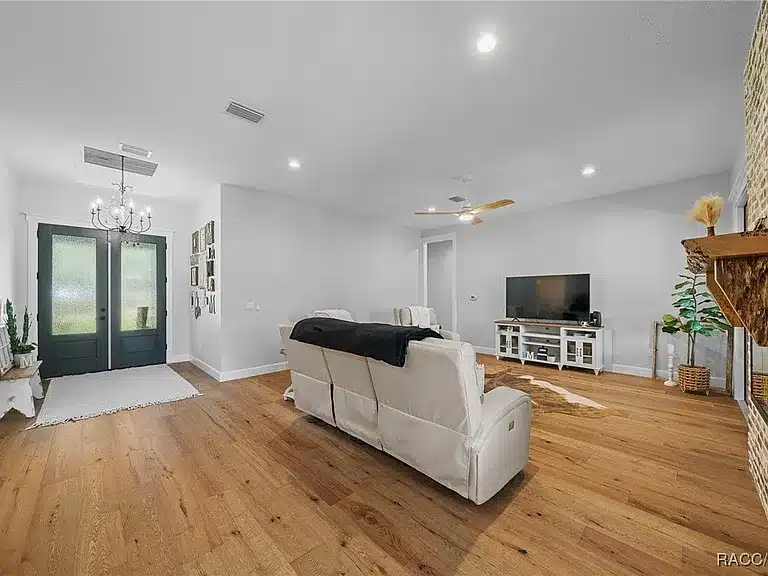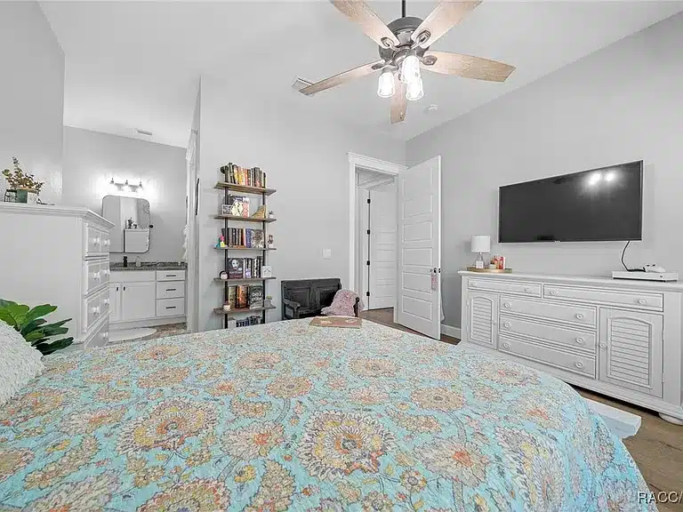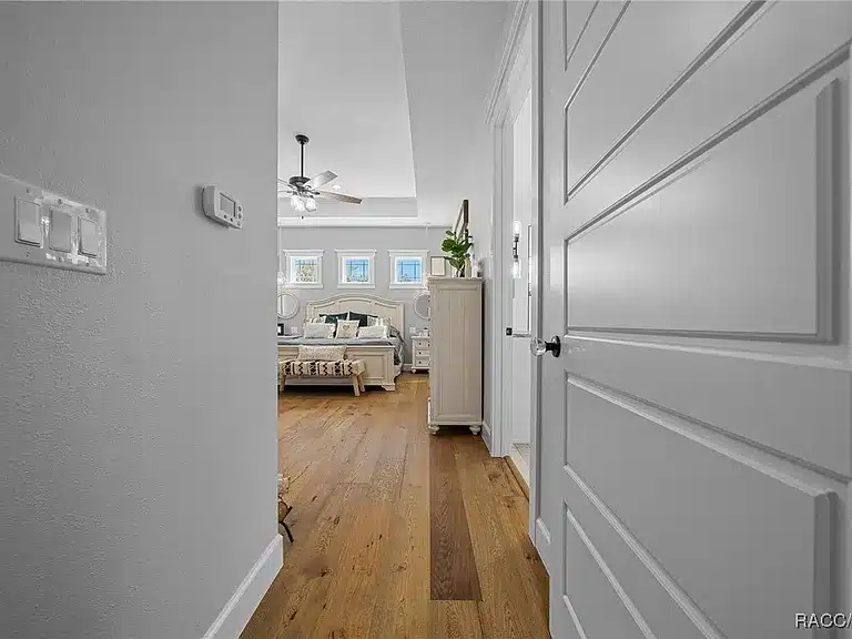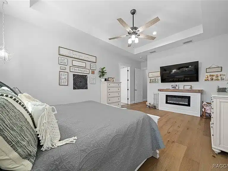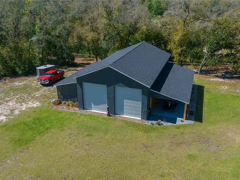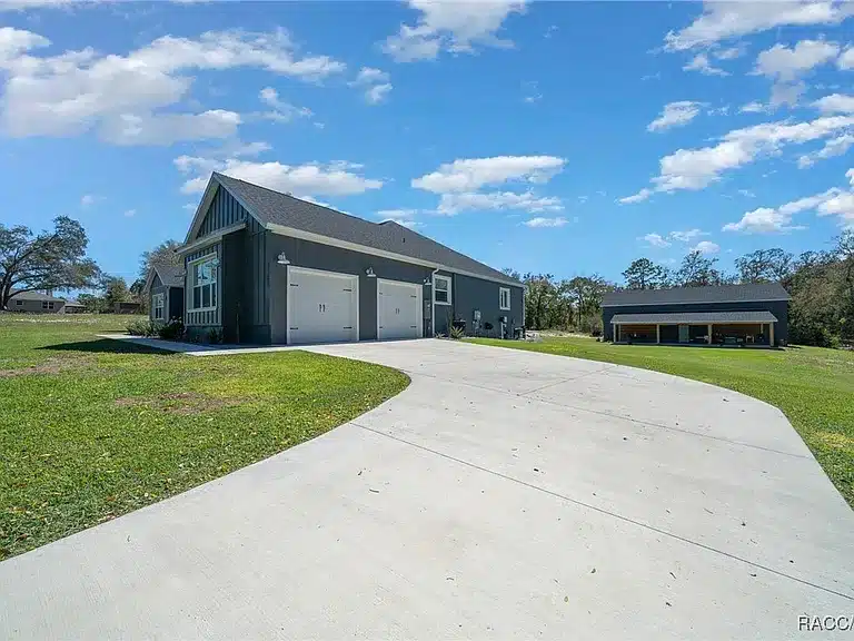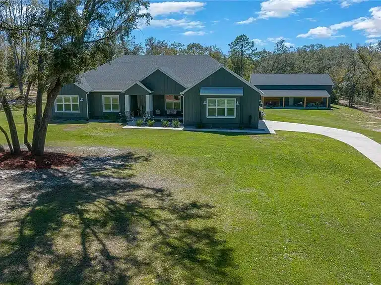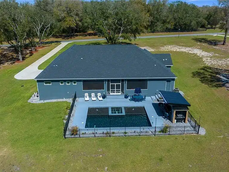 Stunning 4-bedroom, 5-bath single-family residence built in 2023 in the gated Avonlea of Smith Lake community. This custom home features an open floorplan, engineered hardwood and tile flooring, electric fireplace, chef’s kitchen with walk-in pantry, and a luxurious primary suite. Enjoy resort-style outdoor living with a screened salt-water pool + hot tub, covered lanai with Tiki bar and cooking area, and breathtaking views over 3.49 acres. Includes a large detached workshop (3,000+ sq ft) with roll-up doors, bath, kitchen space and loft — perfect for RV/motorhome, boat storage or hobby space. Avonlea offers community lake access with boat ramp and dock on spring-fed Smith Lake, ideal for boating/fishing. Underground utilities, propane tank for appliances/pool heater, and abundant storage round out the features.