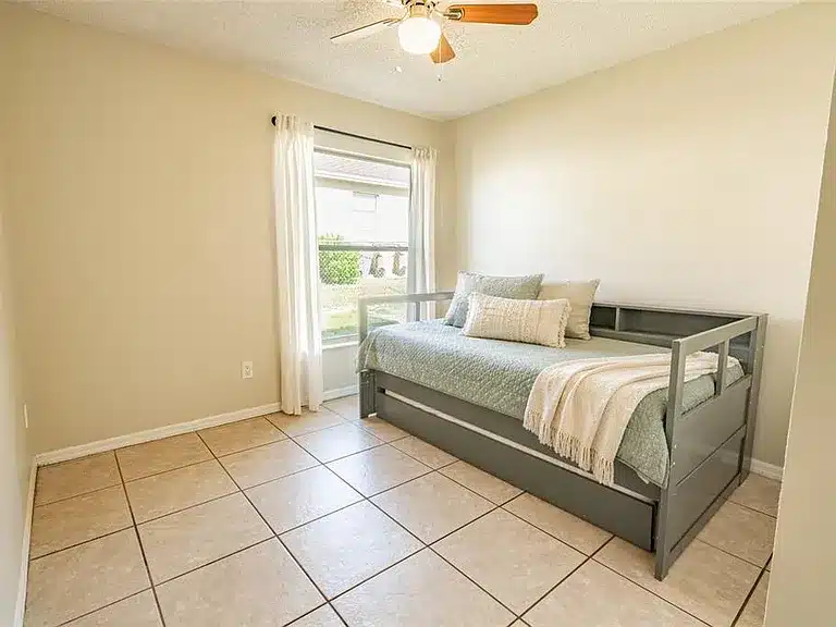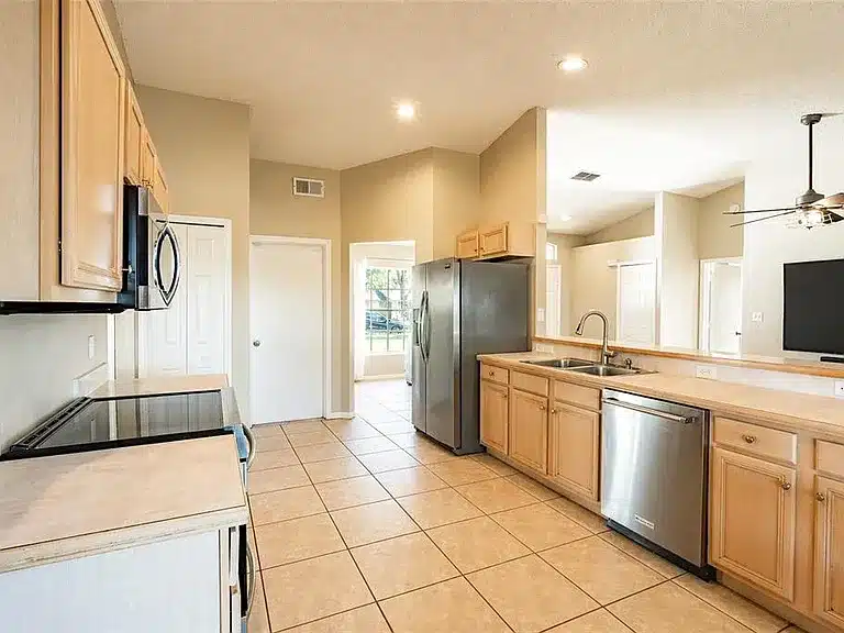 Welcome to this beautifully maintained 3-bedroom, 2-bath home located at 15816 Oakland Court in Clermont, Florida. Offering 1,384 square feet of comfortable living space, this home blends thoughtful upgrades with a highly desirable location on a quiet cul-de-sac next to a scenic bike trail. Inside, you’ll find porcelain tile flooring throughout, creating a clean, modern flow from room to room. The home features an inviting eat-in kitchen with a large window, filling the space with natural light. Both bathrooms have been tastefully upgraded, including a master suite with a walk-in shower and a second bath with a tub and shower combination. Major systems have already been updated for peace of mind, including a three-year-old roof, three-year-old gas water heater, and three-year-old washer and dryer. Ceiling fans are installed throughout the home, with additional fans on the screened back porch, perfect for relaxing evenings. Outdoor living is just as appealing, with a screened entryway, fully fenced private backyard, sprinkler system, and two large mature trees providing shade and character. The home sits on a north-facing lot in a community offering amenities such as a pool, playground, and tennis courts. This move-in-ready home combines comfort, updates, and location, just minutes from recreation, trails, and all that Clermont has to offer.