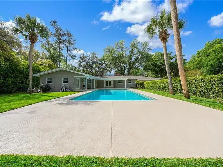 2009 SE 15th Lane puts brick construction, a saltwater pool, and a .47 acre homesite together in Sherwood Forest/Woodfields, all without an HOA. With 2,478 living square feet, this single story home offers 3 bedrooms, 3 full baths, a flex room, and a 2 car attached garage in an in-town Ocala location where homes with this much land are getting harder to find. Inside, the layout gives you great options. The flex room can serve as a 4th bedroom, office, or hobby space, and the main living areas flow easily into the kitchen and adjoining rooms for everyday use and time with family or guests. Large windows throughout the home bring in natural light and keep the interior bright. Brazilian cherry wood floors run through the living room and 2 bedrooms, while the 21 x 17 signature suite has brand new carpet. French doors, walk in closets, and 3 full baths add even more flexibility to the floor plan. Outside, the pool adds another full living area to the property, with room around it to enjoy right away and make your own over time. The variable speed pool pump was just replaced April 2, and the pool deck was freshly painted in March 2026. The private yard adds even more usable outdoor space, and the lot size is a major advantage this close to town. The update list here is impressive. Roof and A/C (gas heat) are both just 5 years old. A whole house natural gas Generac generator is already in place for added peace of mind when the power goes out. The garage includes a new Genie garage door opener with soft sound rollers. The cast iron drain pipes have already been rehabilitated by Pipeliner Pros, and both the windows and breaker panel were replaced several years ago. Set on a quiet street in Sherwood Forest, this property gives you room to spread out without giving up convenience. Shopping, restaurants, schools and daily errands are all a short drive away. No HOA only adds to the appeal.