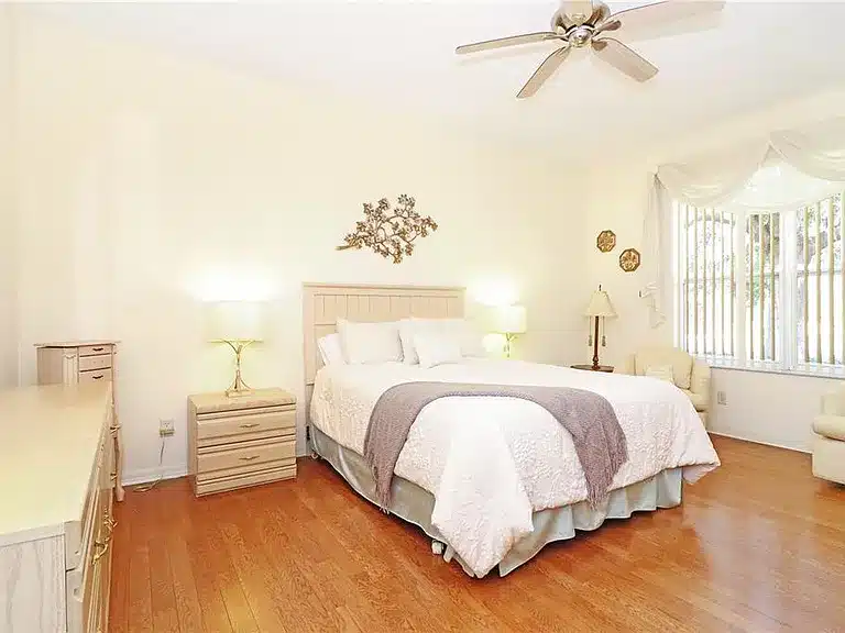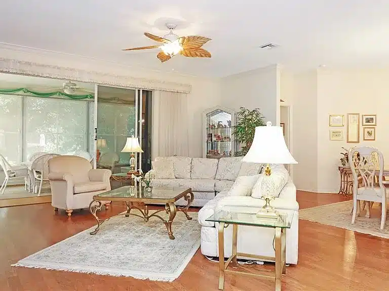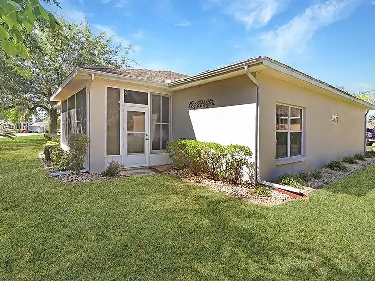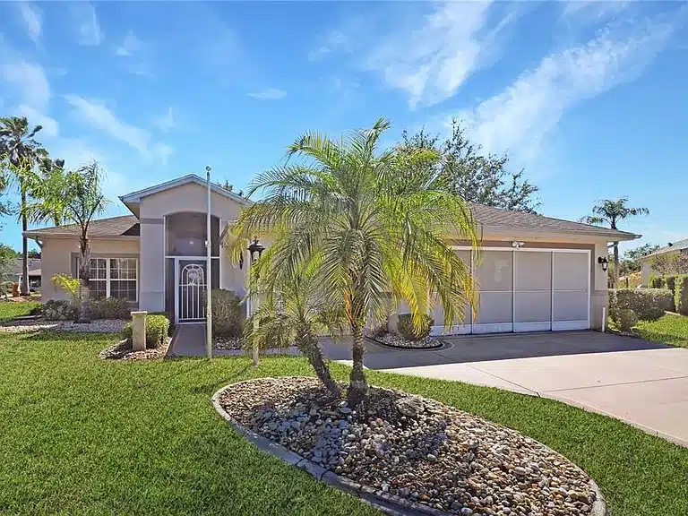 Spacious 3-bedroom, 2-bath single-family home in the gated 55+ community of Royal Highlands. This desirable York model sits on a quiet cul-de-sac lot and offers a split floorplan for privacy, a large great room with crown molding, formal dining space, and a well-appointed kitchen featuring a pantry, sunny breakfast nook, built-in desk, and solar tube that brightens the interior. The primary suite includes dual sinks, garden tub, large shower, and two closets. Two additional guest bedrooms, an office/den off the kitchen, and an enclosed lanai overlooking a private backyard provide versatile living space. The oversized 2-car + golf cart garage offers ample storage. Community amenities include clubhouse, pools, fitness, golf, tennis/pickleball, shuffleboard, and more; HOA dues include cable TV, high-speed internet, and RV/boat storage.