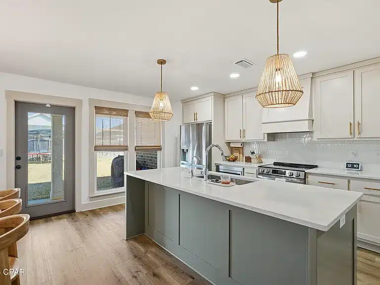 Modern 4-bedroom, 2-bath single-family home located in Panama City. Built in 2023, this home offers approximately 1,711–1,724 sq ft of living space with an open floor plan, vaulted ceilings, and upgraded finishes. The kitchen features quartz countertops, solid wood cabinetry, and modern appliances. The primary suite includes a spa-style bathroom and walk-in closet. The property sits on about a 6,000 sq ft lot and includes a fenced backyard and a two-car garage, making it ideal for comfortable family living.