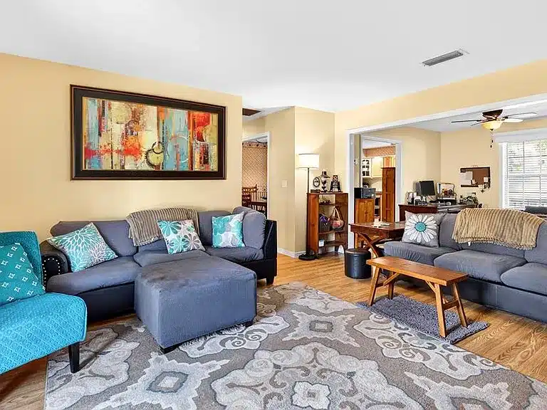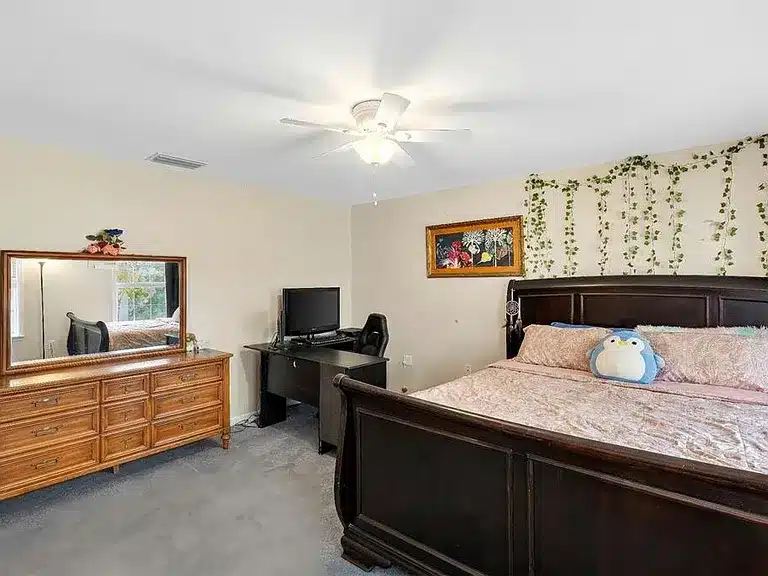 Charming 3-bedroom, 2-bath single-family home located in the Silver Meadows Central gated community on just over 1 acre of land. This inviting residence features an open layout with spacious dining and living areas, a well-appointed kitchen with breakfast room and center island, and an oversized primary suite with walk-in closet and attached bath. Additional flex space can be used as an office, gym, or hobby room. Outdoor living includes a front porch, a private patio and fire pit, a fenced yard with a 12 × 25 shed, and room for pets or entertaining. The home comes with a 2-car side entry garage, generous yard space, and privacy in a peaceful setting. HOA includes gated access and recreation amenities.