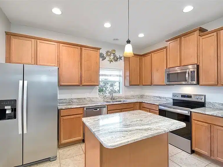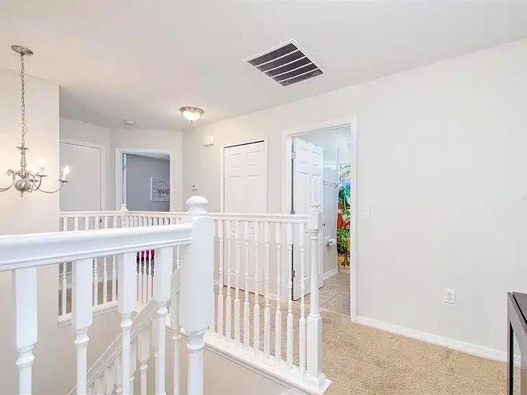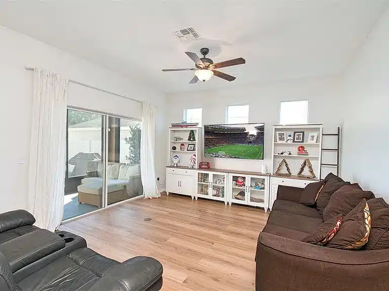 Beautifully designed 3-bedroom, 2-full-bath + 1-half-bath home in the gated Waterside Pointe community of Groveland. This craftsman-style residence features a welcoming front porch, open kitchen with granite countertops, 42″ cabinets, and stainless steel appliances, and a comfortable family room opening to a screened patio and fenced backyard — ideal for relaxation or entertaining. Upstairs, the peaceful primary suite offers a tray ceiling and walk-in closets. Waterside Pointe residents enjoy exceptional resort-style amenities including a large pool with waterslide, fitness center, playgrounds, tennis courts, park areas, and private boat ramp to the Clermont Chain of Lakes. Conveniently located minutes from shopping, dining, and central Florida attractions.