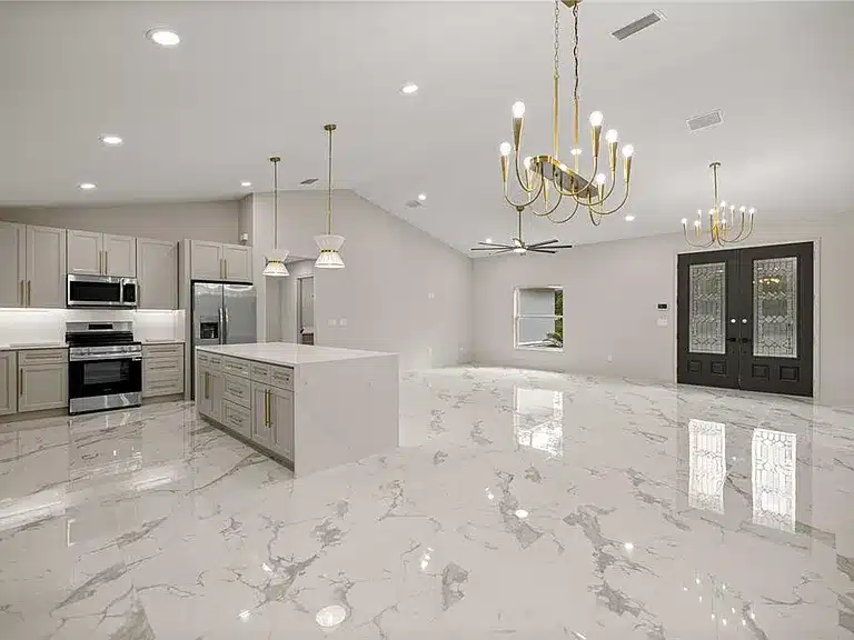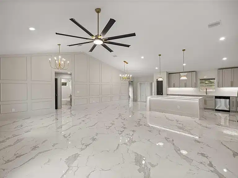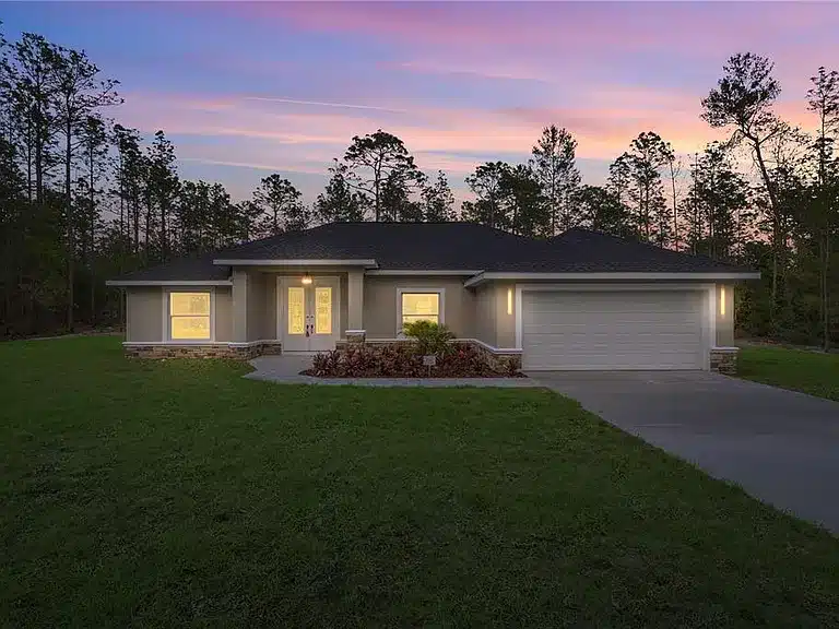 It’s a rare gem, new construction, on 1.16 ACRE – NO CDD, NO HOA! You’ll be awed by this beautiful, stone front, 4 bed/3 bath split floorplan home amidst stunning horse farms in a quiet Rolling Hills neighborhood. This private, oversized, cleared lot features ample space for entertaining, PLUS space to store the RV, boat, and other toys or add a workshop. Open the lighted glass, double front door to luxurious finishes, sprawling open floorplan with vaulted ceilings, recessed and elegant pendant lighting, and stunning wood accent feature wall. Other well-appointed features include crown-topped shaker kitchen cabinets with warm glow under lighting, striking kitchen island with seamless waterfall edge, and quartz countertops throughout. You’ll notice 5″ baseboards, ample cabinet storage, professional stainless steel appliances, enduring tile flooring throughout – NO CARPET in this house, premium ceiling fans, and an inside laundry room with a soaking sink! Every detail, from the doors to the cabinetry, features luxurious, high-end hardware. The spacious primary suite features a tray ceiling, tons of natural light with large casement windows, walk-in closet, and a sizable ensuite bathroom with beautifully tiled shower, dual vanity, and separate water closet. Make the 3rd guest room/bathroom ensuite the guest wing, mother-in-law suite or office. Neutral paint, ceiling fans, carriage lights, beautiful landscaping, plush grass – You have nothing left to do but move right in and make this house your Retreat! Escape the hustle and bustle of city life! Located close to the World Equestrian Center, shopping, dining, medical centers, and natural springs. Don’t miss it, schedule your private showing!
