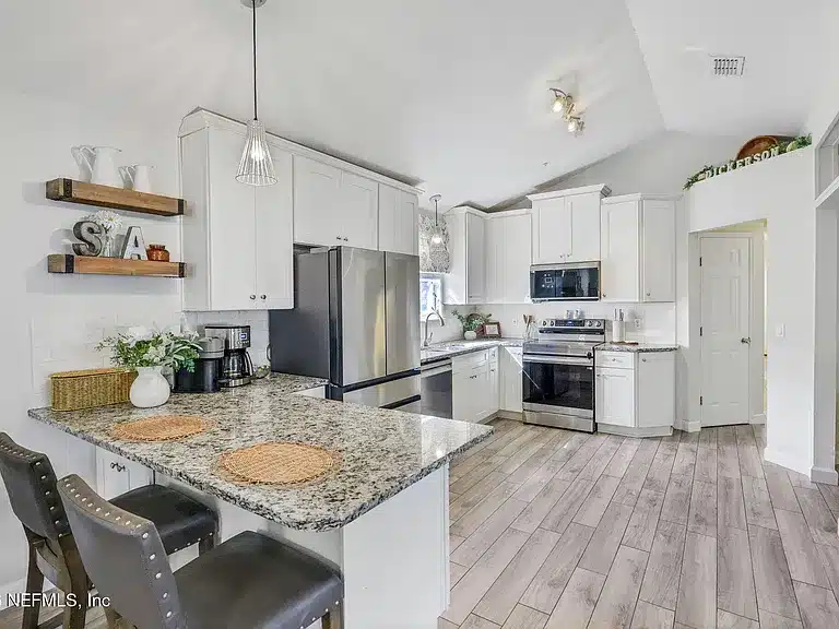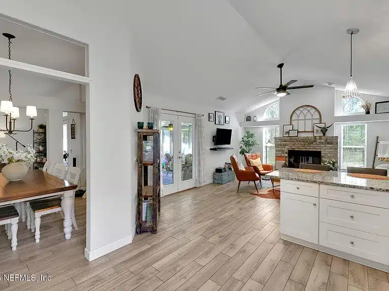 Spacious 4-bedroom, 2-bath single-family home located in the Chimney Lakes community of Jacksonville. This well-maintained residence offers 2,164 sq ft of living space with a split-bedroom floor plan, vaulted ceilings, and a private primary suite with dual vanities, soaking tub, and separate shower. The home sits on a large 0.55-acre lot and includes a wood-burning fireplace and generous living areas, perfect for comfortable family living.