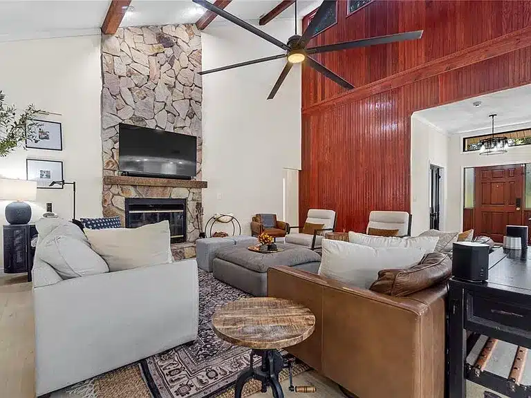 Beautifully updated and modern single-family home offering 3 bedrooms and 2 full bathrooms with approximately 1,984 sq ft of living space on a 0.54-acre lot in the Shadow Woods Add 01 subdivision. The open floorplan features a remodeled kitchen with a large island, stainless-steel appliances, high vaulted ceilings, and abundant natural light. The third bedroom is currently used as a home office with a built-in Murphy bed, easily converted back to a bedroom. Cozy up by the wood-burning stone fireplace in the living area. The private, tree-lined backyard provides a peaceful outdoor setting without HOA restrictions, and the enclosed rear porch adds extra living space. Conveniently located about 10 minutes from Downtown Ocala with easy access to shopping, dining, and the historic square. listed by ASHLEY YACHT REALTY
