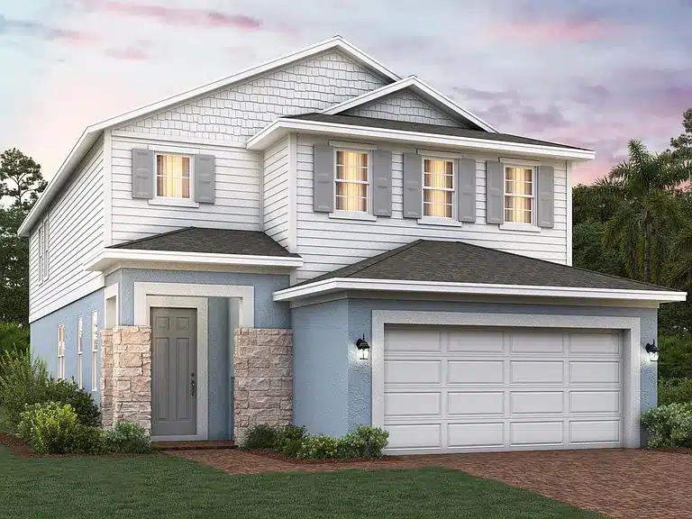 Introducing the DeLeon, a stunning 4-bedroom, 2 full and 1 half bath home by Trinity Family Builders, boasting 2,356 square feet of luxurious living space under AC. Enter through the inviting covered entry into the spacious foyer, leading to a modern open-concept layout featuring a gourmet kitchen, elegant dining area, and a cozy family room. The main floor also includes a convenient half bath and access to the large 2-car garage. Upstairs, discover a versatile gathering space perfect for entertaining or relaxation. The primary suite is a sanctuary with a Trinity Luxury Retreat featuring a premium frameless heavy glass bath shower enclosure, Moen chrome one-function 8″ diameter spray head eco-performance rainshower, and a Moen chrome eco-performance handheld shower. Three additional bedrooms and a full bath complete the second floor. Step outside to the rear covered outdoor lanai, ideal for al fresco dining and enjoying the Florida sunshine. Plus, experience the exclusive Trinity Package Place, offering built-in outdoor storage with a secure delivery door and electronic keypad door lock, providing peace of mind and convenience for all your storage needs. Welcome home to the DeLeon, where luxury meets functionality in every detail. *Some photos include AI-generated or digitally staged furniture and dcor for visualization purposes. Items shown are for illustration only and may not accurately represent scale, proportions, or actual finishes.